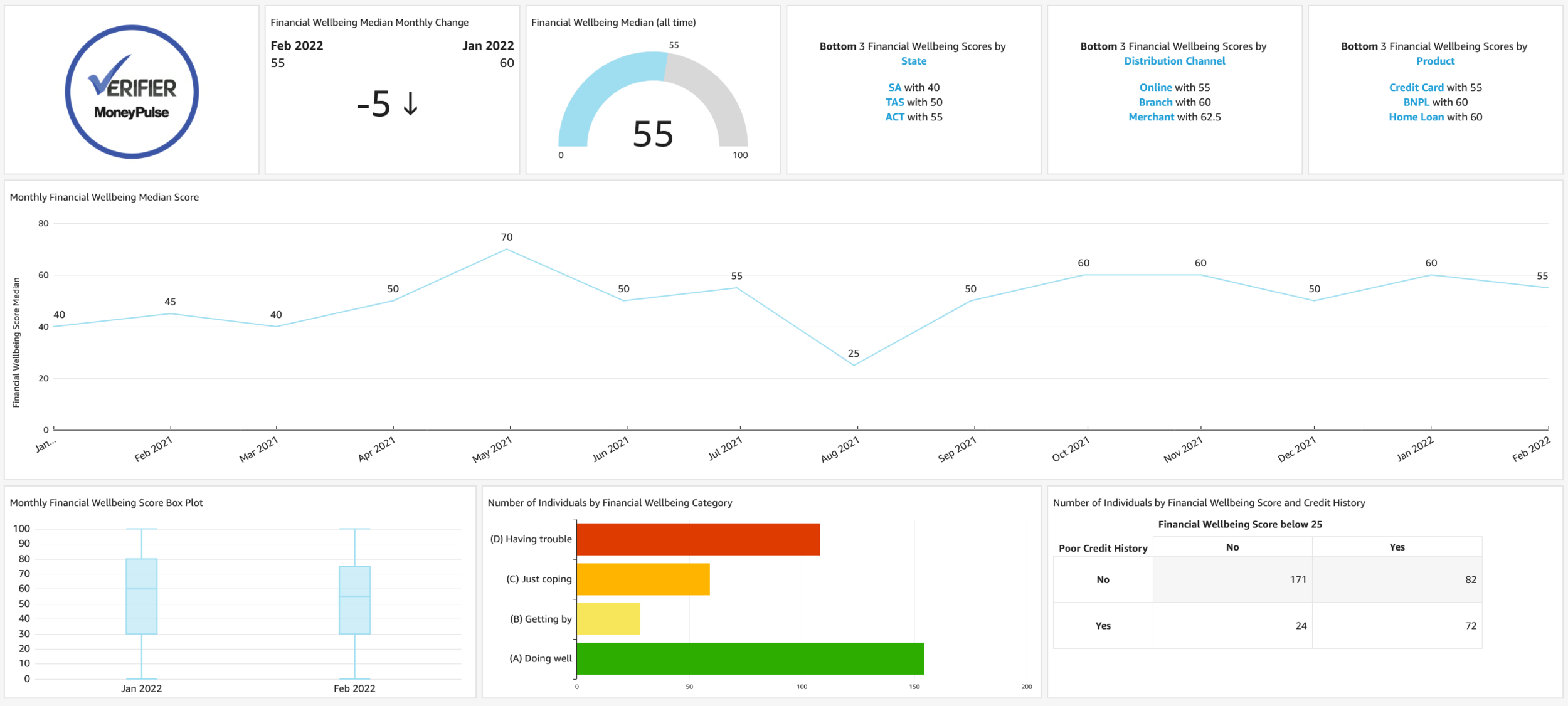 Verifier has partnered with the Melbourne Institute: Applied Economic & Social Research, the University of Melbourne, to create a financial wellbeing index score tailored to financial products. Verifier is working with the Melbourne Institute on an ongoing basis to ensure the survey methodology is robust, and to continuously evaluate and fine tune it.